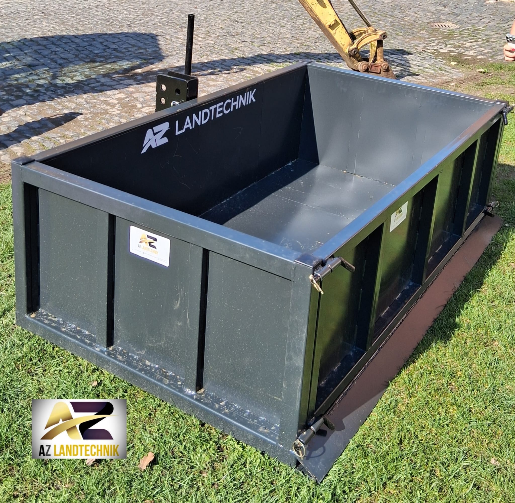 Stabile Transportbox für den Heckanbau am Traktor. Ideal zum Transport von Werkzeugen, Holz, Erde, Schüttgut oder anderen Materialien im landwirtschaftlichen Betrieb.